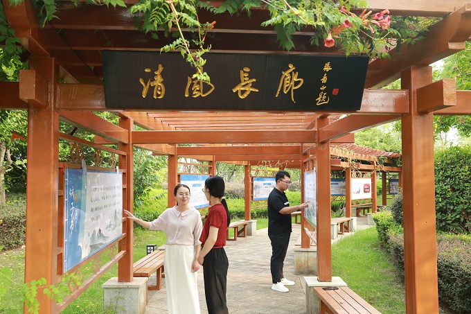 南阳市纪委监委注重发挥廉洁文化浸润作用,大力推进阵地建设,利用清廉长廊等阵地传递“廉”能量,教育引导党员干部筑牢思想防线。图为该市年轻干部在清廉长廊参观学习。