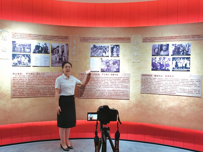 桐柏县纪委监委扎实推进廉洁文化建设,持续丰富廉洁文化产品供给,积极创作各类廉洁文化作品,不断提升廉洁文化的传播力、感染力、影响力。图为该县纪检监察干部在县家风家训馆录制清廉家风微视频。