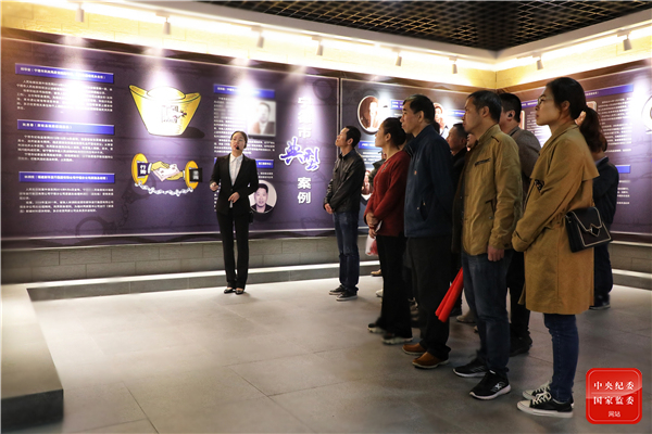 福建省福鼎市纪委监委建立廉政教育基地,注重同级同类干部警示教育,专门设置身边人身边事案例展板,组织党员干部参观基地学习违纪违法典型案例,进一步引导党员干部守好纪法底线。图为该市文体和旅游局党员干部在参观学习本地违纪违法典型案例。(福建省福鼎市纪委监委 陈是 摄)