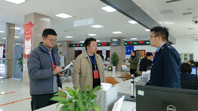 南召县纪委监委聚焦考核评估繁多、文山会海、督查检查调研扎堆、工作过度留痕等问题,为基层干部减轻工作负担。图为该县纪检监察干部到政务服务大厅了解相关情况。(周闻天 摄 2025年3月28日河南省纪委监委网站)