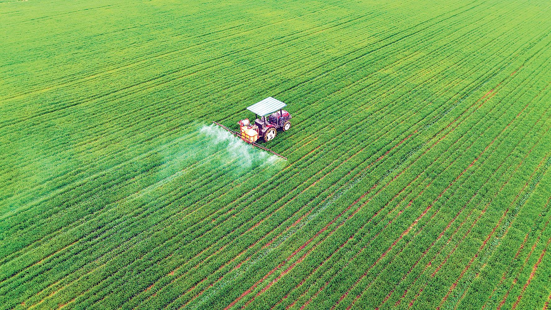2025年政府工作报告提出粮食产量预期目标为1.4万亿斤左右。眼下正值春耕春管关键期,不少地方通过高质量播种、投入植保机防治病虫害等,确保粮食丰产丰收。图为近日,位于河南省南阳市新野县施庵镇的河南省现代农业大数据产业技术研究院小麦高标准农田,农民驾驶农机进行“一喷三防”作业。(图片来源:视觉中国 2025年3月13日《中国纪检监察报》第3版)