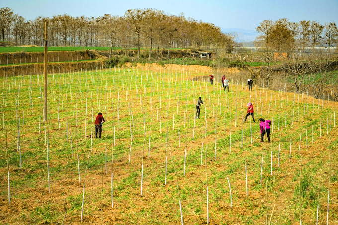 阳春三月,是苗木种植的最佳时机,在新密市米村镇范村田间地头,村民们正趁着雨后晴好天气,抢抓时机栽种石楠树,用实际行动建设美丽乡村。(新密市纪委监委冯桂林摄)
