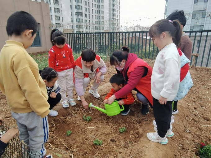 孟春之月,盛德在木。洛阳市涧西区南昌路街道的志愿者来到辖区幼儿园,和小朋友们一起栽种花木、培土浇水,开展植树节护绿活动,在孩子们心中播撒爱护环境的种子。(洛阳市涧西区纪委监委李京京摄)