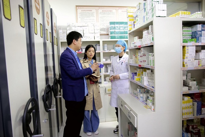 新密市纪委监委紧盯医疗卫生领域存在的侵害群众利益突出问题,开展医疗乱象专项整治活动,集中解决群众反映强烈的收受红包回扣、不合理诊疗、收费不合理等问题。图为新密市纪检监察干部对辖区医院及相关医保定点药店进行实地督导检查。(新密市纪委监委 韩小红 摄)