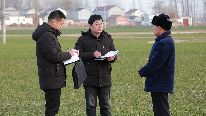 周口市淮阳区纪委监委聚焦群众反映的集中问题,深入农户、合作社,实地了解惠农补贴发放情况。图为该区纪检监察干部在王店乡黄李村了解到户增收资金发放情况。(周口市淮阳区纪委监委 李昆源 摄)
