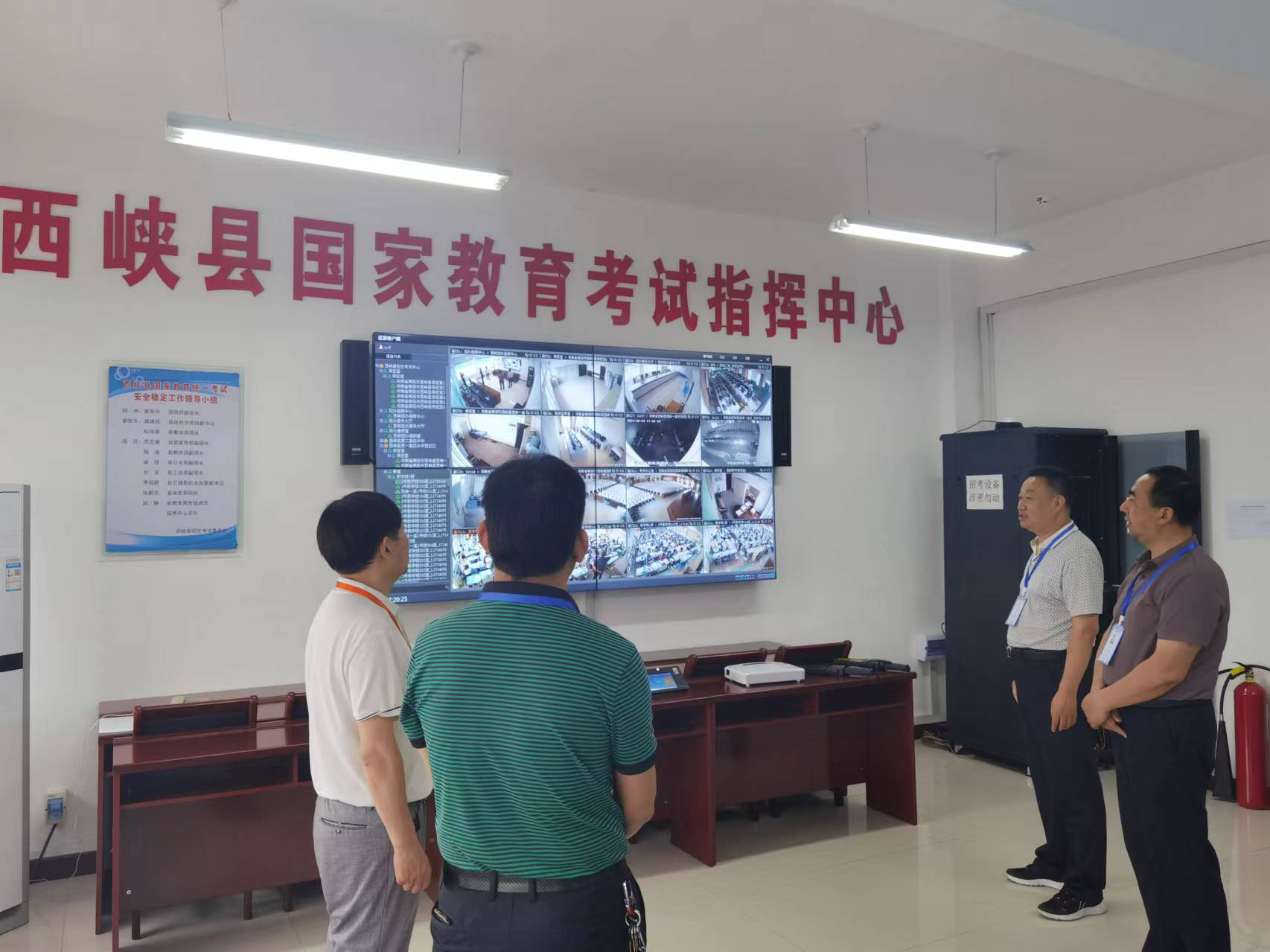 桐柏县纪委监委工作人员深入各考点考务办公室了解考务工作安排情况。
