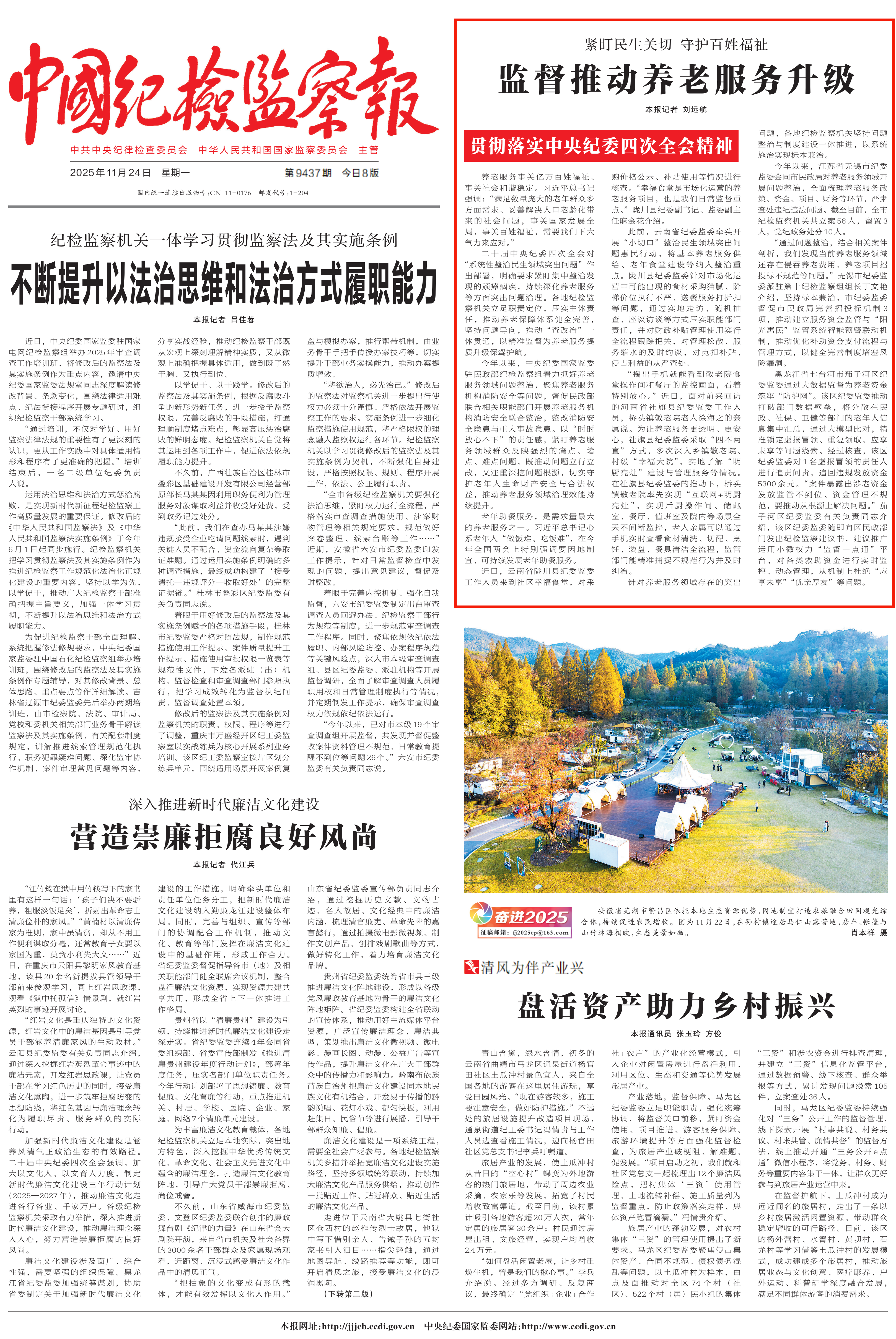 二十届中央纪委四次全会对“系统性整治民生领域突出问题”作出部署,明确要求紧盯集中整治发现的顽瘴痼疾,持续深化养老服务等方面突出问题治理。各地纪检监察机关立足职责定位,压实主体责任,推动养老保障体系健全完善,坚持问题导向,推动“查改治”一体贯通,以精准监督为养老服务提质升级保驾护航。