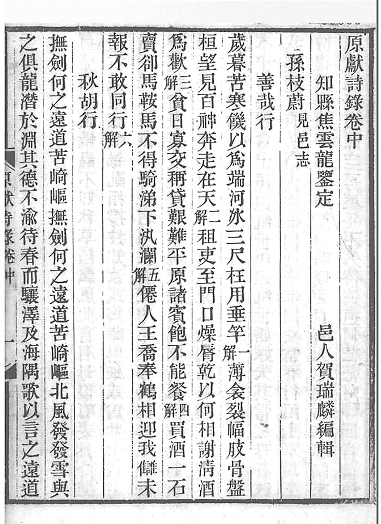 贺瑞麟一生编纂了许多著作,在家训读物方面有《诲儿编》等,他还十分重视乡邦文献的整理与搜集,这是他编纂的《原献诗录》,收录了76位作者的几百首诗歌。资料图片