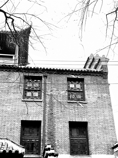 贺龙指挥部三楼窗口上的弹痕,工作人员用箭头标出了弹痕的位置
