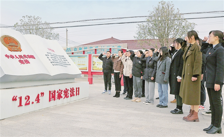 12月4日,江苏省海安市部分近三年新入职、新晋升的机关青年干部在白甸镇施溪村法治文化广场集中宪法宣誓。 图片来源:视觉中国