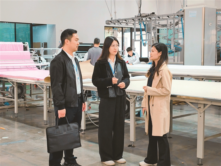 广东省清远市清城区纪委监委统筹协调“室组地”力量,深入开展涉企“三乱两多”问题专项整治。图为该区纪检监察干部深入广清纺织服装产业有序转移园企业了解有关情况。谢晓惠 摄
