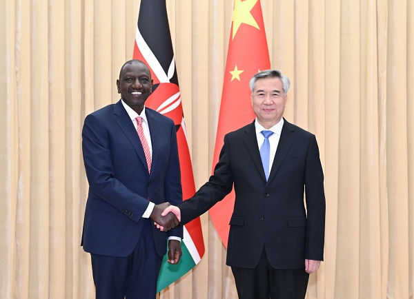 中共中央政治局常委、中央纪委书记李希16日在北京会见来华出席第三届“一带一路”国际合作高峰论坛的肯尼亚总统鲁托。