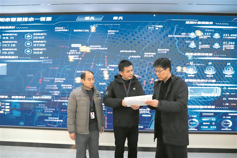 河南省南阳市纪委监委紧盯城市管理、城市安全、政务服务,以精准监督推动智慧化建设落地见效,全程护航城市治理体系和治理能力现代化升级。图为该市纪检监察工作人员在市市政环卫服务中心了解地下排水管网雨污分流情况。周赛 摄