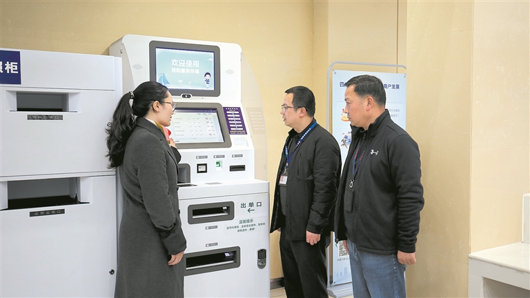 四川省成都市新津区纪委监委将监督触角延伸到园区规划、建设、招商、运营全流程,压实职能部门责任,靶向破解企业发展难题。图为该区纪委监委派驻区委办纪检监察组工作人员在区政务服务中心查看企业自助服务情况。周也 摄