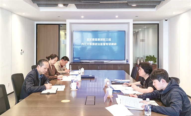 上海市杨浦区纪委监委发挥“室组地企”协同联动优势,聚焦内江大板房成套改造项目强化政治监督。图为杨浦区纪委监委第三派驻纪检监察组到项目负责单位上海卫百辛(集团)有限公司开展专项调研。董旻 摄