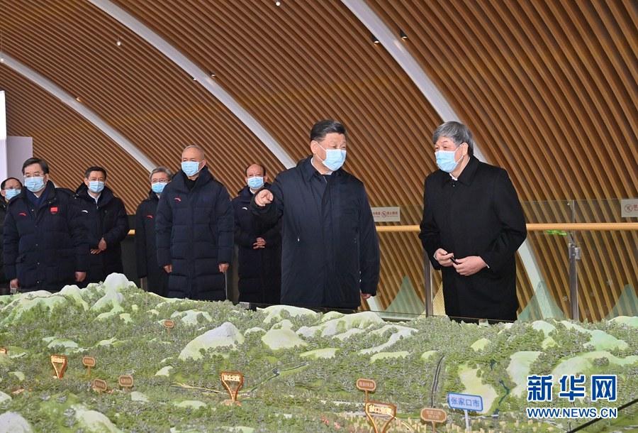1月18日至20日,中共中央总书记、国家主席、中央军委主席习近平在北京、河北考察,并主持召开北京2022年冬奥会和冬残奥会筹办工作汇报会。这是19日下午,习近平在京张高铁太子城站考察调研。新华社记者 鞠鹏 摄