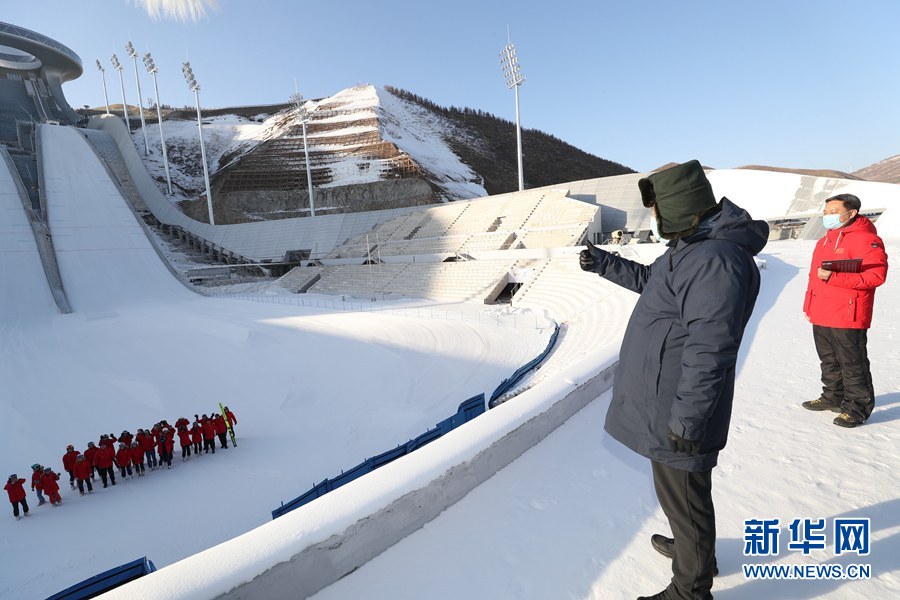 1月18日至20日,中共中央总书记、国家主席、中央军委主席习近平在北京、河北考察,并主持召开北京2022年冬奥会和冬残奥会筹办工作汇报会。这是19日下午,习近平在张家口赛区国家跳台滑雪中心考察调研。新华社记者 鞠鹏 摄