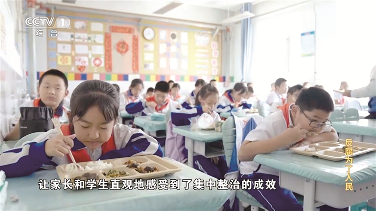 央视综合频道1月5日晚8点档播出电视专题片《反腐 为了人民》第一集《惩治蝇贪蚁腐》,讲述纪检监察机关聚焦群众反映强烈问题,推动开展校园餐、高标准农田建设、住房保障和安居工程等整治工作,让群众从一个个具体问题的解决中感受到整治成果,不断增强获得感、幸福感、安全感。图为专题片视频截图。