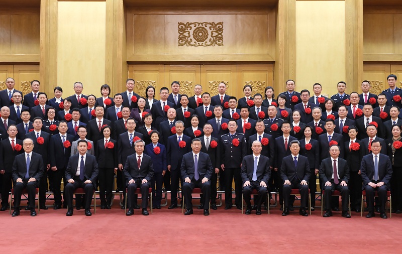 11月6日,党和国家领导人习近平、蔡奇、李希等在北京人民大会堂会见全国“枫桥式工作法”入选单位代表。 新华社记者 李学仁 摄