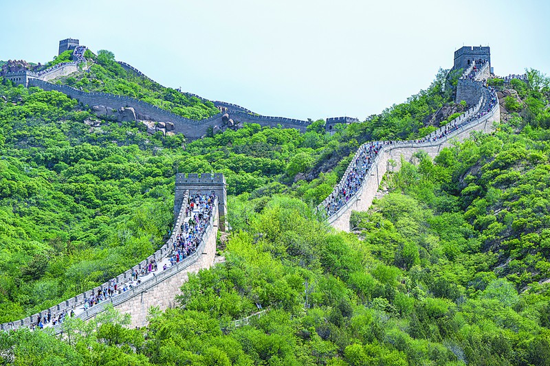 北京市延庆区以八达岭长城为核心,整合周边水关长城、花家窑长城等,打造长城大景区,并将逐步开放。图为近日,往来游客在八达岭长城赏景。 图片来源:视觉中国