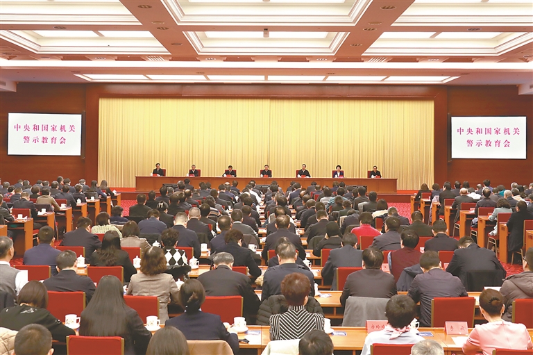 2月20日,中央和国家机关警示教育会在京召开,中央和国家机关各部门机关党委、机关纪委以及机关司局和直属单位党组织、纪检组织负责同志参加会议。图为会议现场。松山 摄