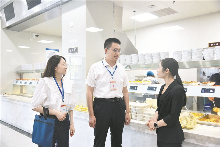 江苏省涟水县纪委监委持续部署开展违规公务接待、违规吃喝问题集中整治,狠刹各类违规吃喝歪风。图为近日,该县纪检监察干部在某机关食堂查看公务用餐情况。杨耀 摄