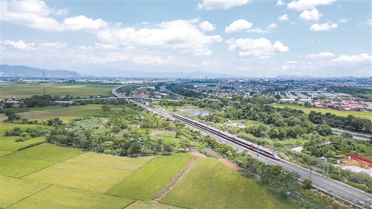 图为在印度尼西亚万隆,雅万高铁高速动车组列车在行驶。新华社记者 徐钦 摄