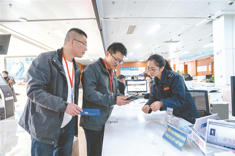 浙江省杭州市纪检监察机关坚持受贿行贿一起查,持续加大对行贿所获不当利益的追缴和纠正力度,斩断滋生腐败的利益链条。图为近日,杭州市建德市纪检监察干部前往市行政审批中心税务窗口了解相关情况。 苏思思 摄