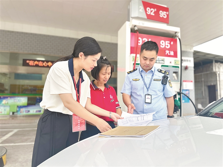 浙江省东阳市纪委监委紧盯“四风”隐形变异新动向,对大型商超、烟酒店、鲜花礼品店等重点场所开展实地检查,严查违规吃喝、隔空送礼、违规发放津补贴等隐形变异问题。图为该市纪委监委联合相关职能部门在某加油站了解相关情况。 黄薏憓 摄