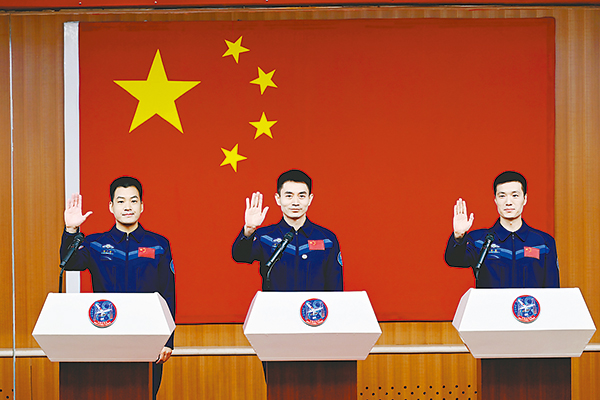 神舟十八号航天员与记者见面,恰是在第九个“中国航天日”。回望载人航天的一路征程,从无人到有人,从舱内到舱外,从单舱到多舱,再到全构型的中国空间站,一路挑战、一路跨越、一路创新,一代代航天人顽强拼搏、接续奋斗,不断书写着中国航天人自信自强、创新超越的辉煌。