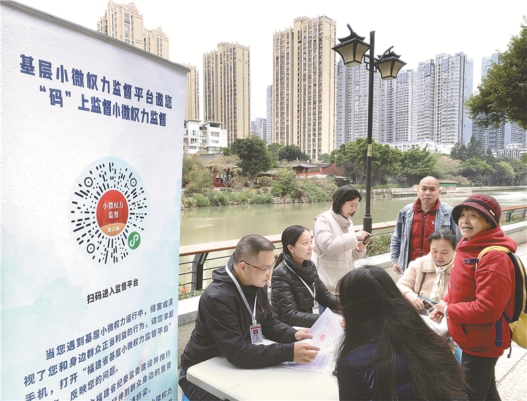 福建省福州市鼓楼区纪委监委通过线上线下相结合方式,宣传推广基层小微权力监督平台,引导群众参与监督、表达诉求,打通基层监督“最后一公里”。图为近日,鼓楼区水部街道纪工委工作人员在公园向居民介绍相关情况。 王奕舒 摄