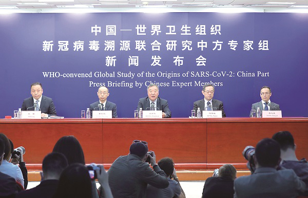 图为3月31日,中国-世界卫生组织新冠病毒溯源联合研究中方专家组在北京举行新闻发布会,介绍新冠病毒溯源联合研究报告有关情况。新华社记者 张玉薇 摄