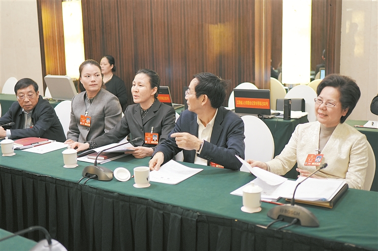 “‘两高’工作报告的很多内容我都感同身受,再加上准备得比较充分,于是就第一个发言了。”温菲告诉记者,虽然组里不乏省市领导,基层代表在审议时却从不拘束怯场,谁准备好了谁先说,谁准备得充分谁多说,每次小组审议都是气氛热烈、言犹未尽。