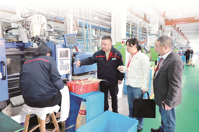 福建省福鼎市纪委监委深入一线走访调研,为企业发展打通堵点。图为该市纪检监察干部到岙里工业区走访了解情况。林芝 摄
