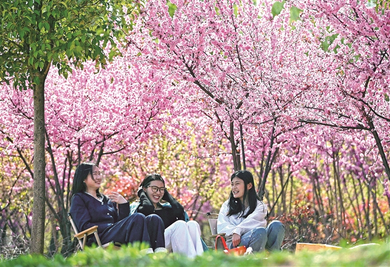 春日里,草长莺飞,人们纷纷来到户外踏青、赏花,感受身边的绿、眼前的美,乐享大美中国、无限春光。图为4月6日,人们在山东省滕州市上善公园休闲。新华社发 李志军 摄