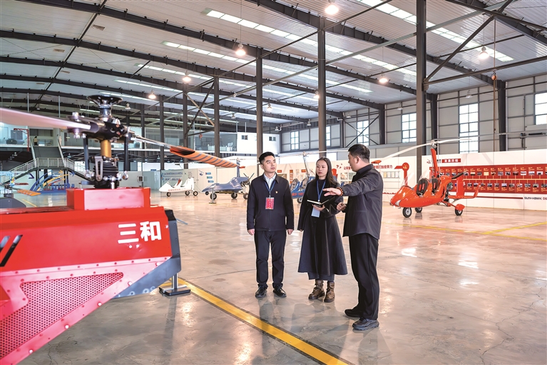 河南省郑州市上街区纪委监委聚焦党中央关于发展新质生产力等重大决策部署,紧盯惠企政策落实等重点环节加强监督。图为该区纪检监察干部在一家制造业公司了解配套政策落实情况。韦耀星 摄
