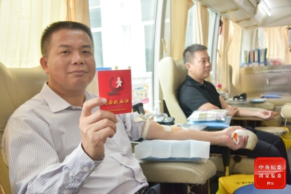 广西壮族自治区梧州市纪委监委组织各党支部的志愿者,积极参与社区文明创建、文明交通劝导、无偿献血等志愿服务活动,以实际行动践行纪检监察干部的忠诚奉献和责任担当。图为该市纪委监委志愿者在参与无偿献血活动。(广西壮族自治区梧州市纪委监委供 林志清 摄)