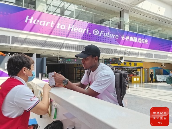 杭州南站志愿服务总队自队伍成立以来,已有近万人次参与到该站的志愿服务活动中,累计服务旅客超200万人次。图为杭州南站志愿者正为外国旅客提供指路引导服务。(杭州市萧山区纪委监委供 张贝嘉 摄)