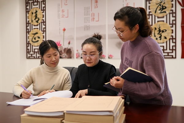 在纪检监察案件审理战线上,江苏省常州市金坛区的女纪检监察干部们以严谨细致与专业担当,构筑起案件质量防线。她们坚持“一把尺子量到底”,对案卷材料逐项核验,以绣花功夫校准每个细节。图为该区女纪检监察干部在开展案件质量评查。(江苏省常州市金坛区纪委监委 张洁 摄)