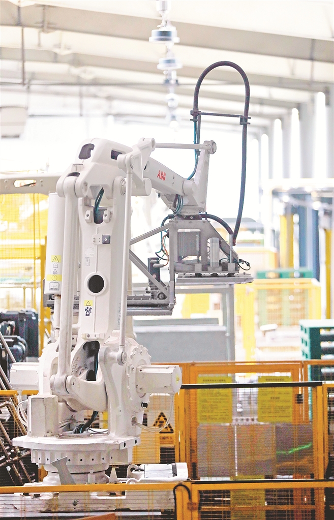 黑龙江省肇东市伊利乳业有限责任公司内的码垛机器人。