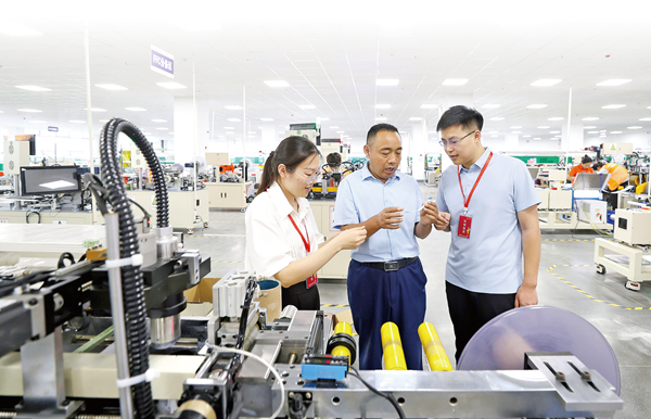 山东省郯城县纪委监委深入重点项目、企业一线开展“走访问计”,持续推动优化营商环境。图为该县纪检监察干部在某电子企业走访了解情况。 图片来源:视觉中国