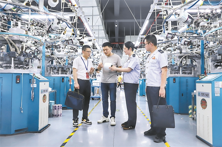 浙江省东阳市纪委监委持续完善“组、地、税”贯通协作机制,组建联合督查组深入企业一线开展走访,聚焦惠企政策落实,找准监督切口,督促责任单位履职尽责,推动营商环境持续向好。图为联合督查组在辖区企业了解惠企政策落实情况。方裕健 摄