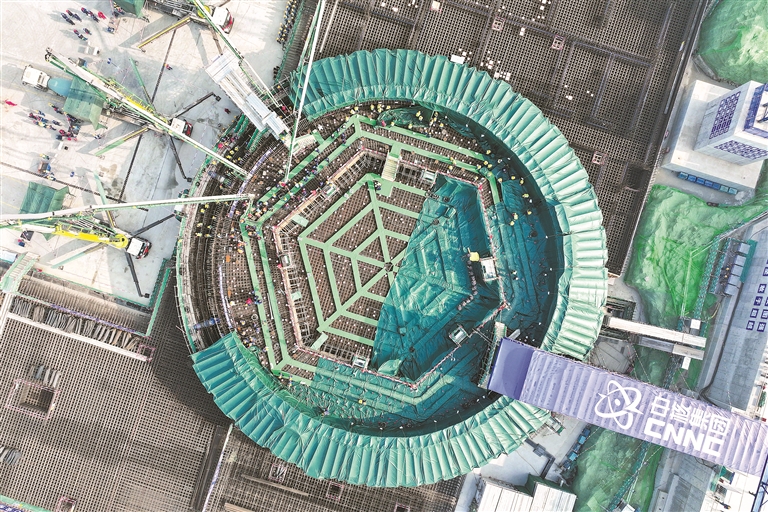 高质量发展是全面建设社会主义现代化国家的首要任务。“十五五”时期,要把因地制宜发展新质生产力摆在更加突出的战略位置。作为全球首个热电耦合的核能供热发电项目,江苏徐圩核能供热发电厂既是保障国家能源安全的重要举措,也是实现“双碳”目标的重要抓手。图为日前,该厂1号机组核岛开始混凝土浇筑,项目进入主体工程建设阶段。 新华社记者 毛俊 摄