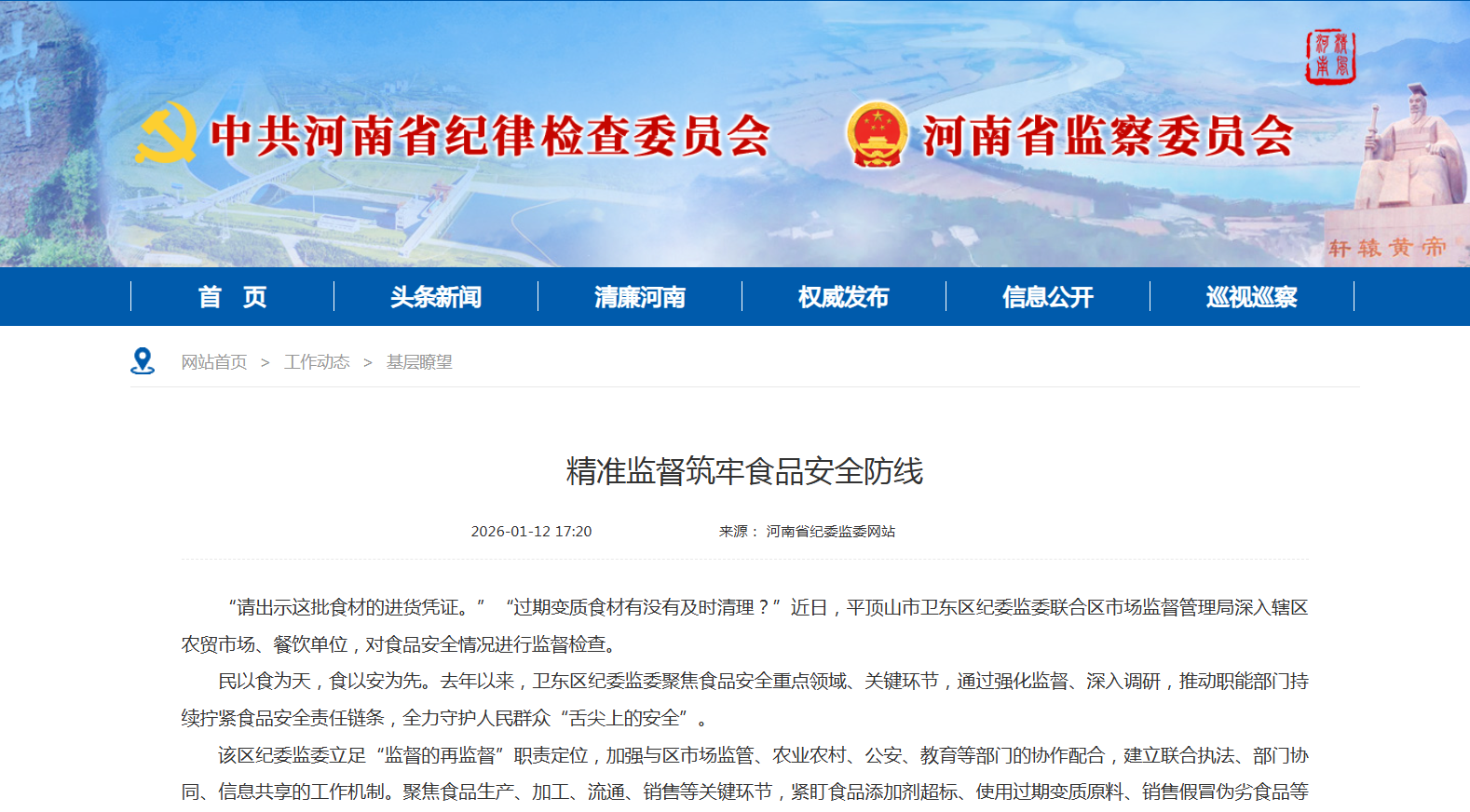 民以食为天,食以安为先。去年以来,卫东区纪委监委聚焦食品安全重点领域、关键环节,通过强化监督、深入调研,推动职能部门持续拧紧食品安全责任链条,全力守护人民群众“舌尖上的安全”。