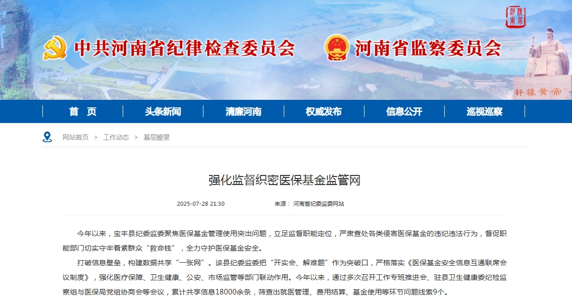 今年以来,宝丰县纪委监委聚焦医保基金管理使用突出问题,立足监督职能定位,严肃查处各类侵害医保基金的违纪违法行为,督促职能部门切实守牢看紧群众“救命钱”,全力守护医保基金安全。