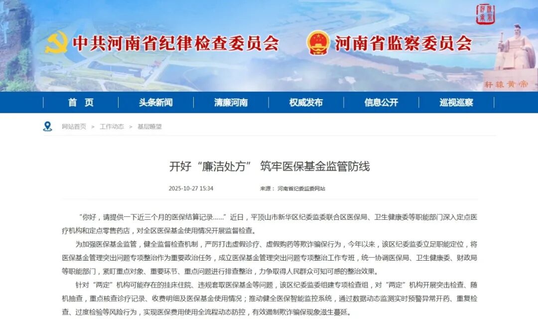 “你好,请提供一下近三个月的医保结算记录……”近日,平顶山市新华区纪委监委联合区医保局、卫生健康委等职能部门深入定点医疗机构和定点零售药店,对全区医保基金使用情况开展监督检查。