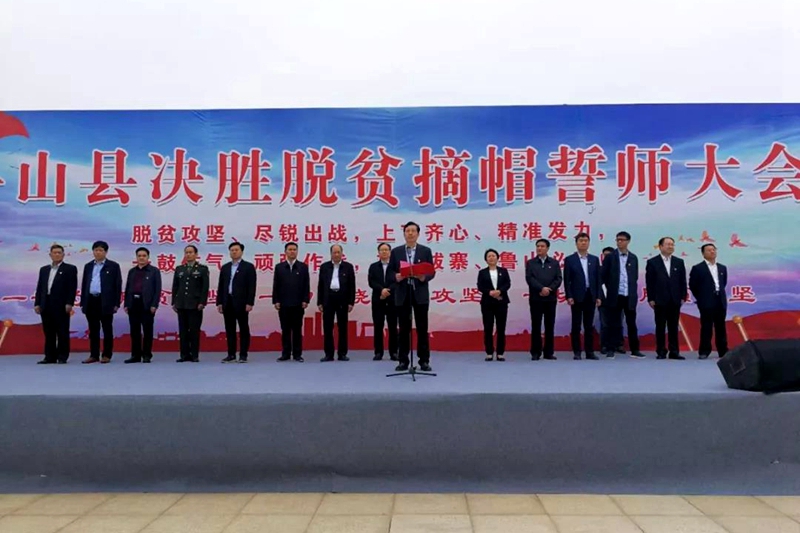 4月20日上午,鲁山县决胜脱贫摘帽誓师大会在尧山公园举行,在雄壮的国歌声后,全场三千余名干部群众举起右拳庄严宣誓,表达必胜决心。市委常委、市纪委书记、市监委主任李建民,市政协副主席、鲁山县委书记杨英锋出席大会。