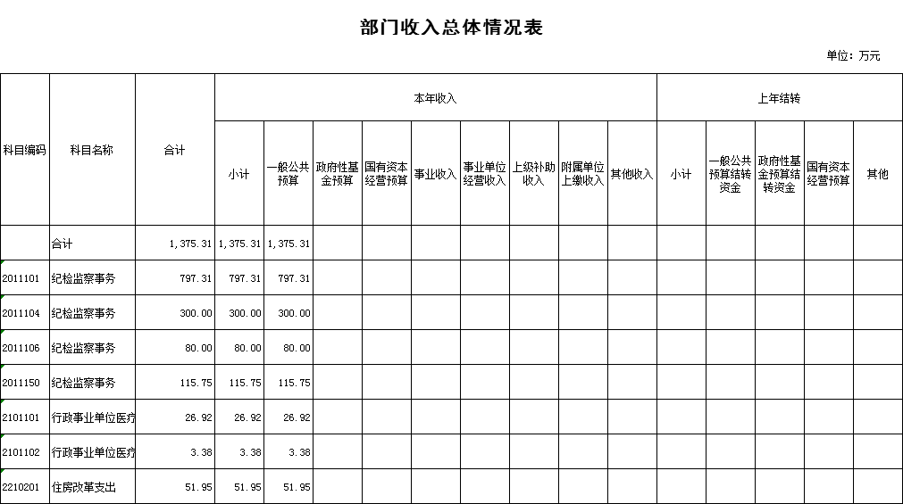 二、部门收入总体情况表