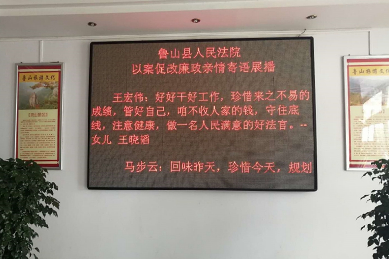 “爸,干好工作,珍惜来之不易的成绩,管好自己,咱不收人家的钱,守住底线,注意健康,做一名人民满意的好法官,这是对您的盼望,也是对您的要求。”8月29日,鲁山县人民法院一楼大厅电子屏展播的“廉情寄语”吸引了过往干警纷纷驻足观看。