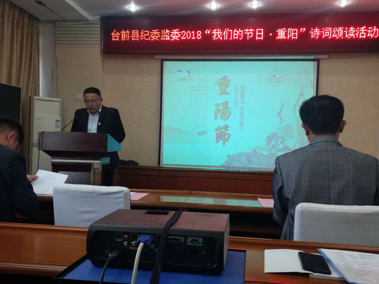 10月17日下午,台前县纪委监察委组织开展2018“我们的节日.重阳”诗词颂读活动,10名纪检监察干部先后登台诵读9首经典诗词作品,并对王维、杜甫、李清照等诗词巨匠及作品进行讲解,分享中华诗词之美,弘扬中华民族优秀传统文化,充分诠释了重阳这一中华传统节日所蕴含的寓意,教育引导全县纪检监察、巡察干部进一步了解传统节日、认同传统节日,建设精神家园,增强爱国情感。(台前县纪委监察委)